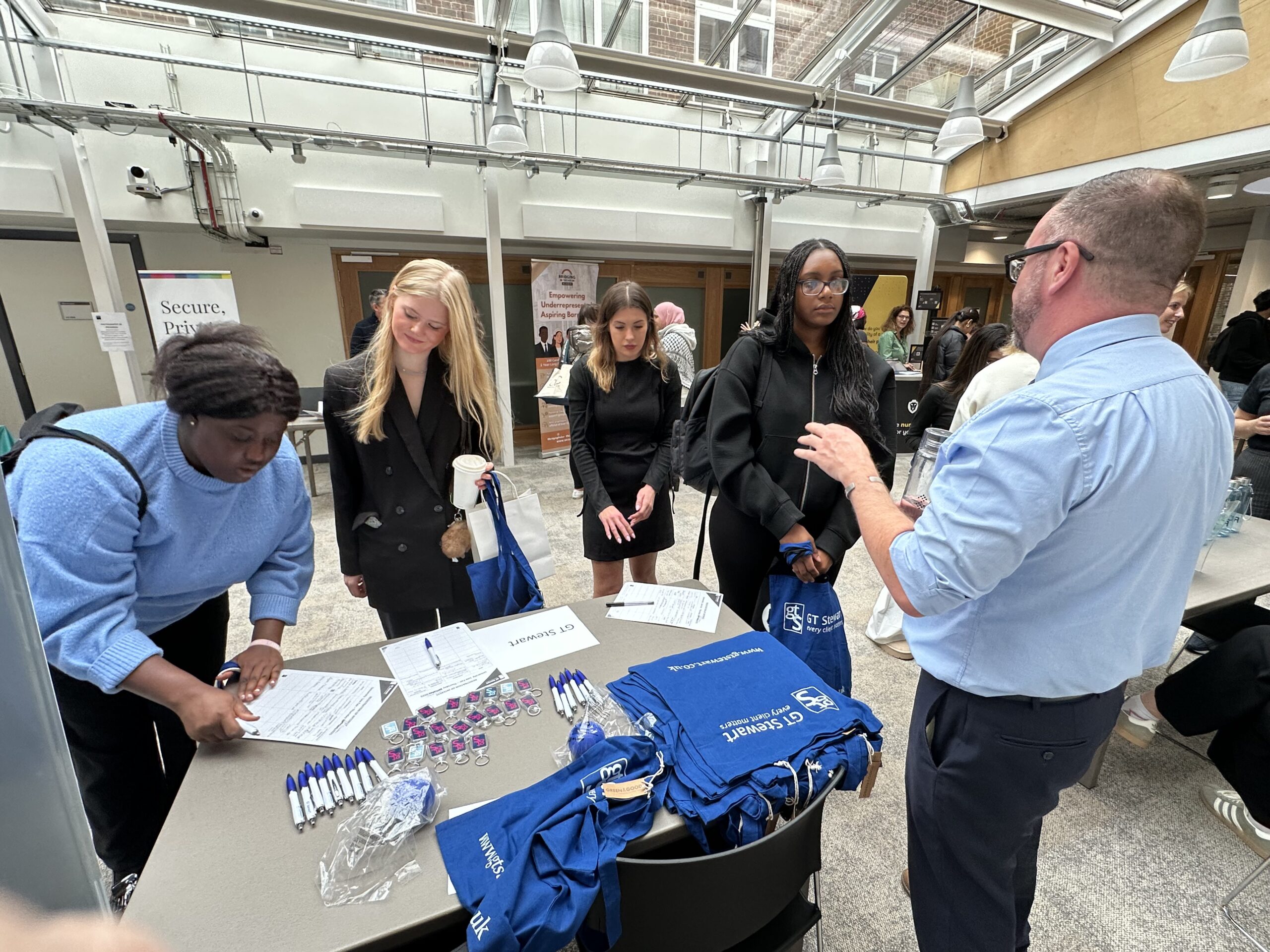Adam Marley, Milena Rozhin, Rhea-Krista Henry and Paaris Kazmi represented the firm, discussing the different areas of law we practise, the various pathways available, and how GT Stewart supports those pursuing training contracts and other routes into the profession.