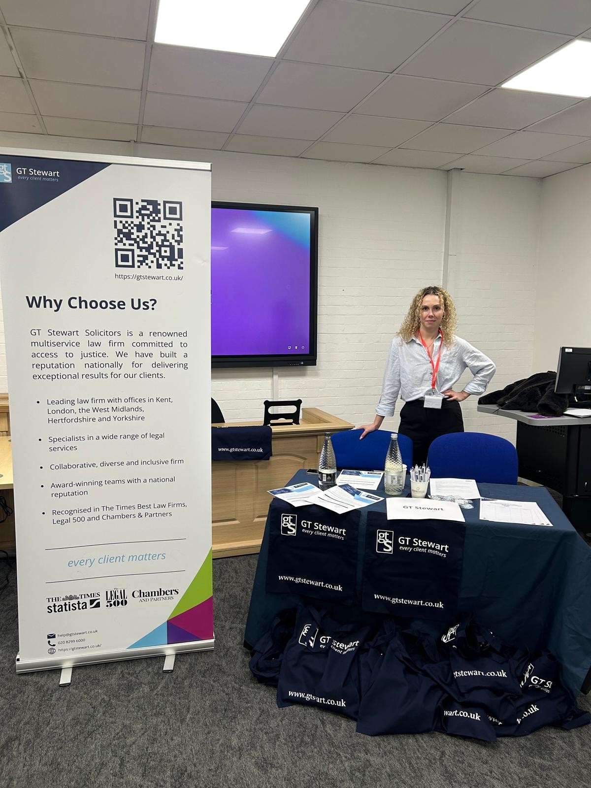 With around 200 students in attendance, Milena Rozhin, Seraphina Kilroy-Silk and Aleksandra Kwiatkowska spoke with many interested in learning more about GT Stewart, the breadth of our practice areas, and the opportunities available to those beginning their legal careers. Our stand was busy throughout the event, with many students seeking guidance on routes into the profession and how to gain valuable experience.