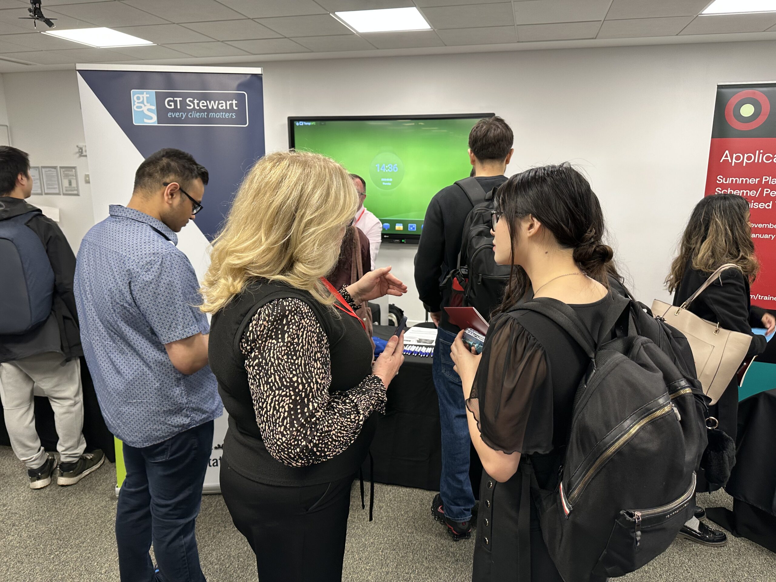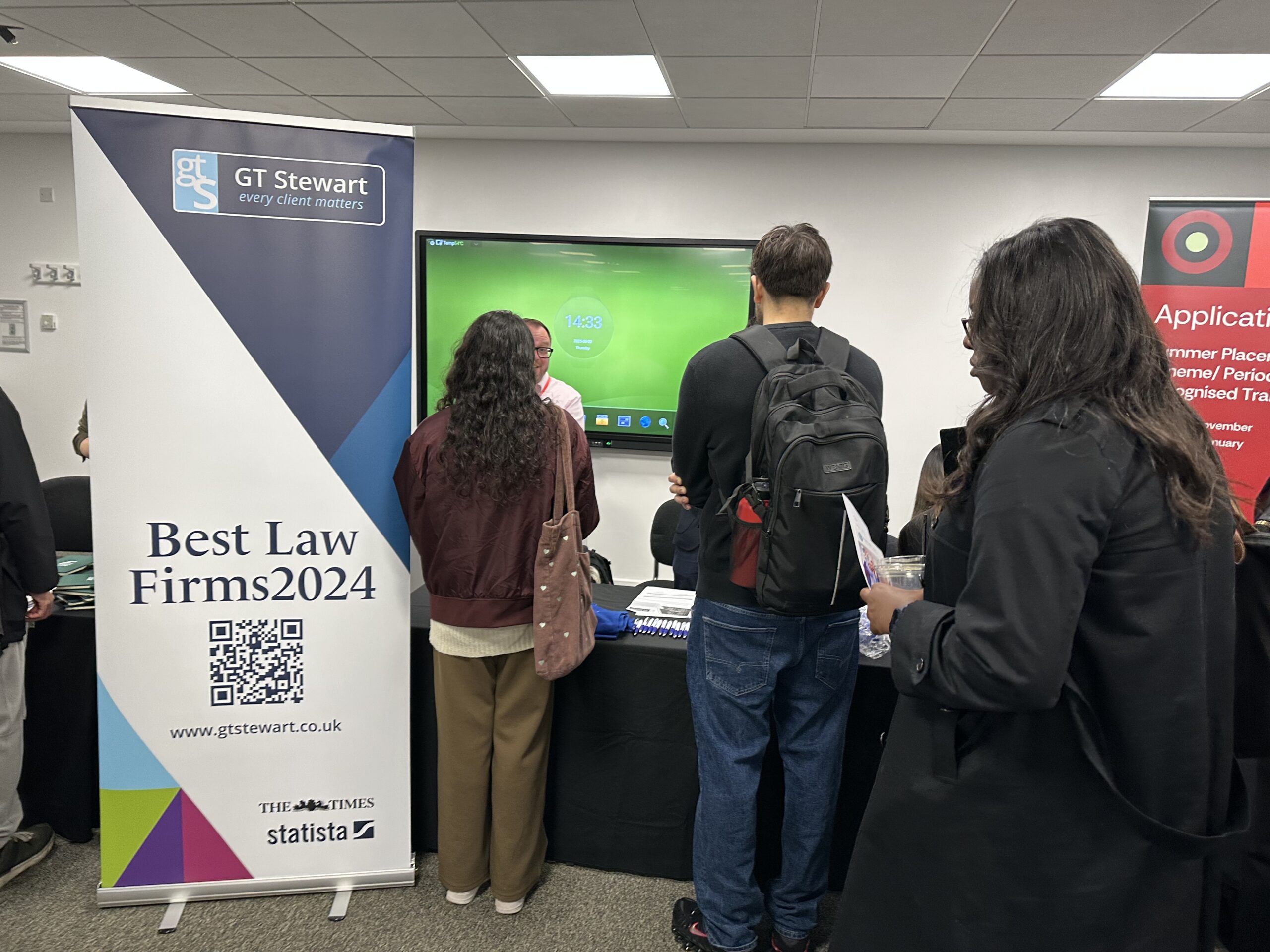 Our team Adam Marley, Adam Iqbal, Caroline Hassani and Paaris Kazmi were on hand to answer a range of insightful questions about GT Stewart’s service offering, our national office network and the structure of our training and career progression routes. Many attendees were keen to understand the selection process, the best routes into the firm, and the key qualities we look for in applicants.