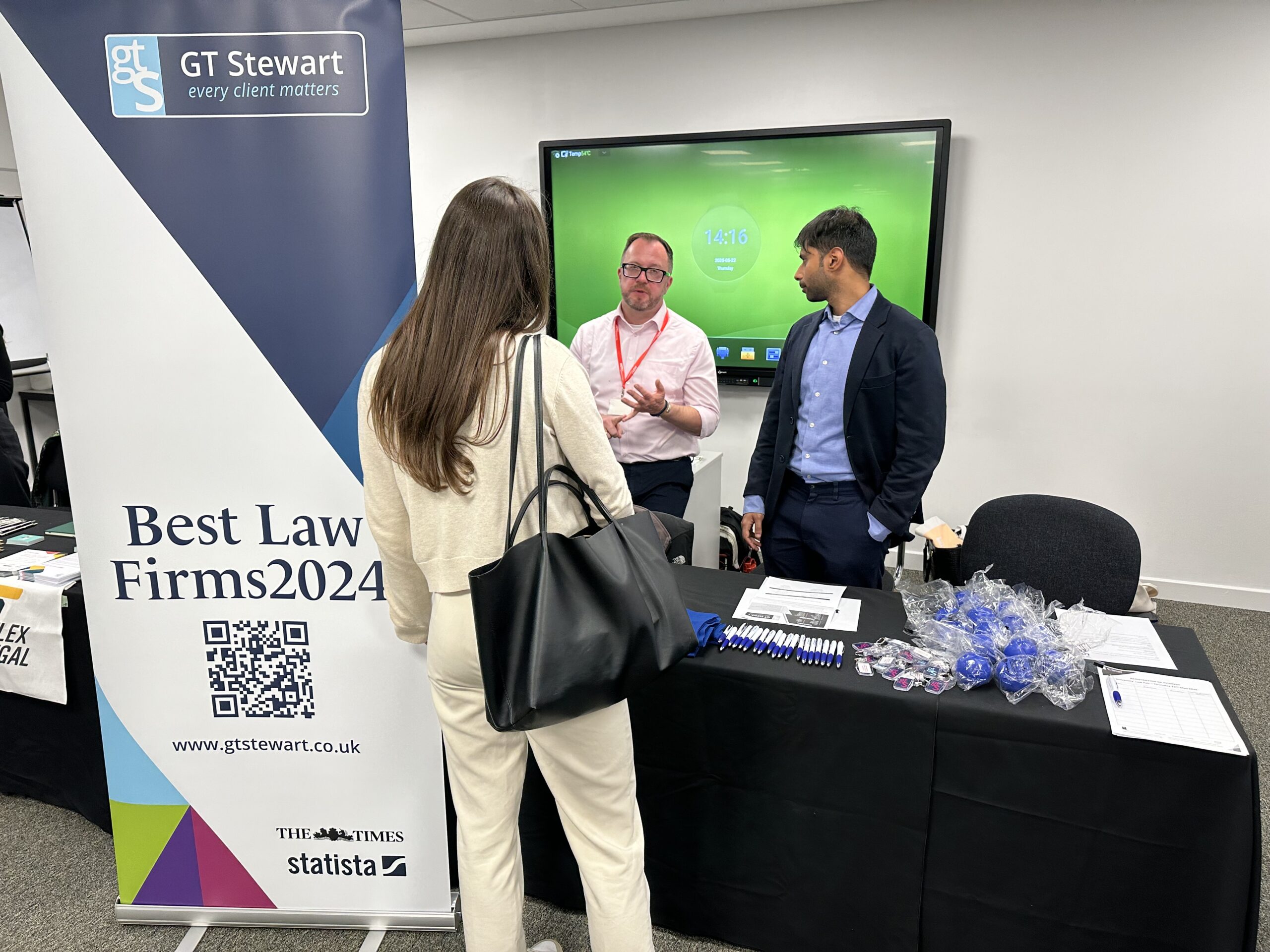 GT Stewart attended the The University of Law National Law Fair where we had the pleasure of meeting many aspiring legal professionals exploring careers in law. The event provided a valuable platform for us to engage with students seeking information about Paralegal roles, Trainee Solicitor positions, and pathways into the legal profession.